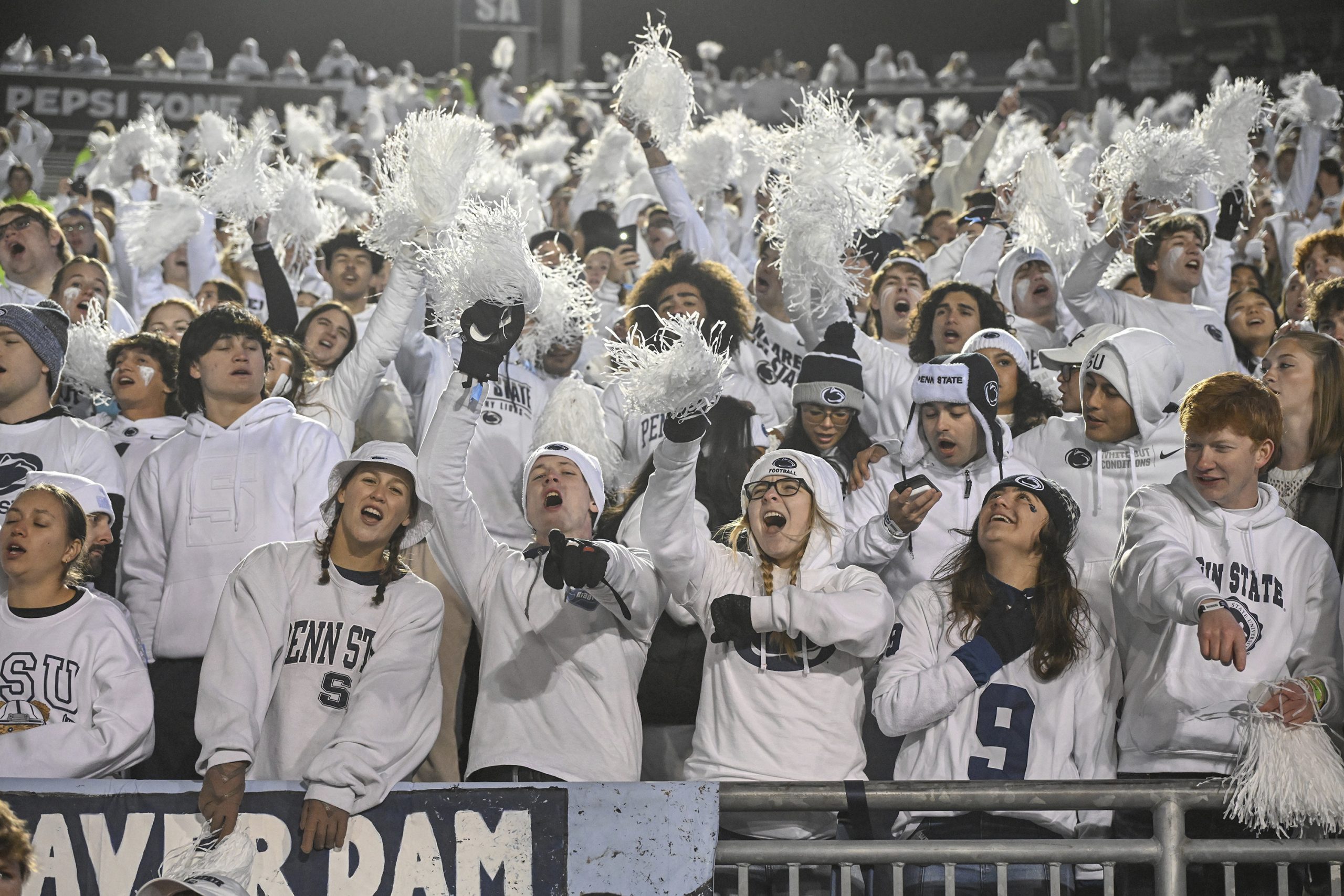 Penn State fan cheer during the fourth quarter against Washington in State College, Pennsylvania, during the teams’ first Big Ten matchup. (AP Photo/Barry Reeger)