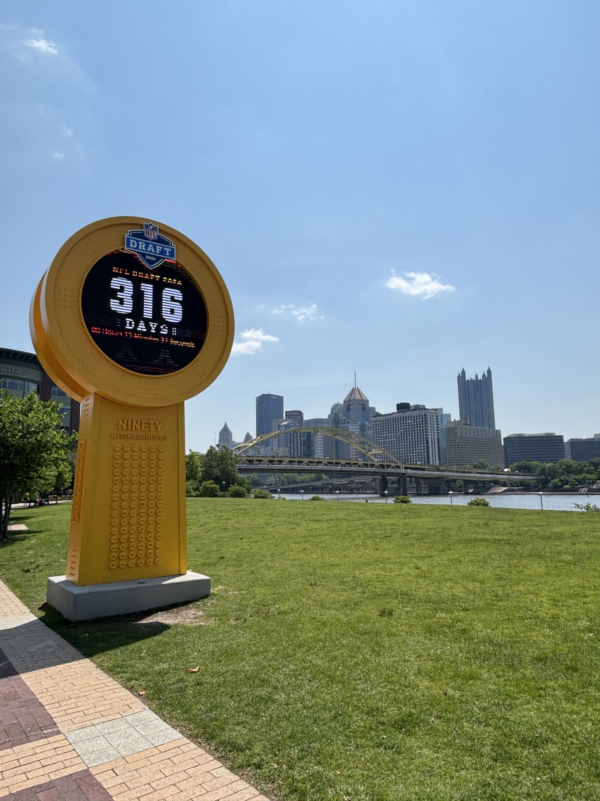 The countdown clock sits in the middle of Pittsburgh’s stadium district, with the Steelers’ Acrisure Stadium within a half-mile walk of the Pirates’ PNC Park. Ticking down by the second, it’s a constant reminder of the time left before the North Shore hosts the NFL Draft.