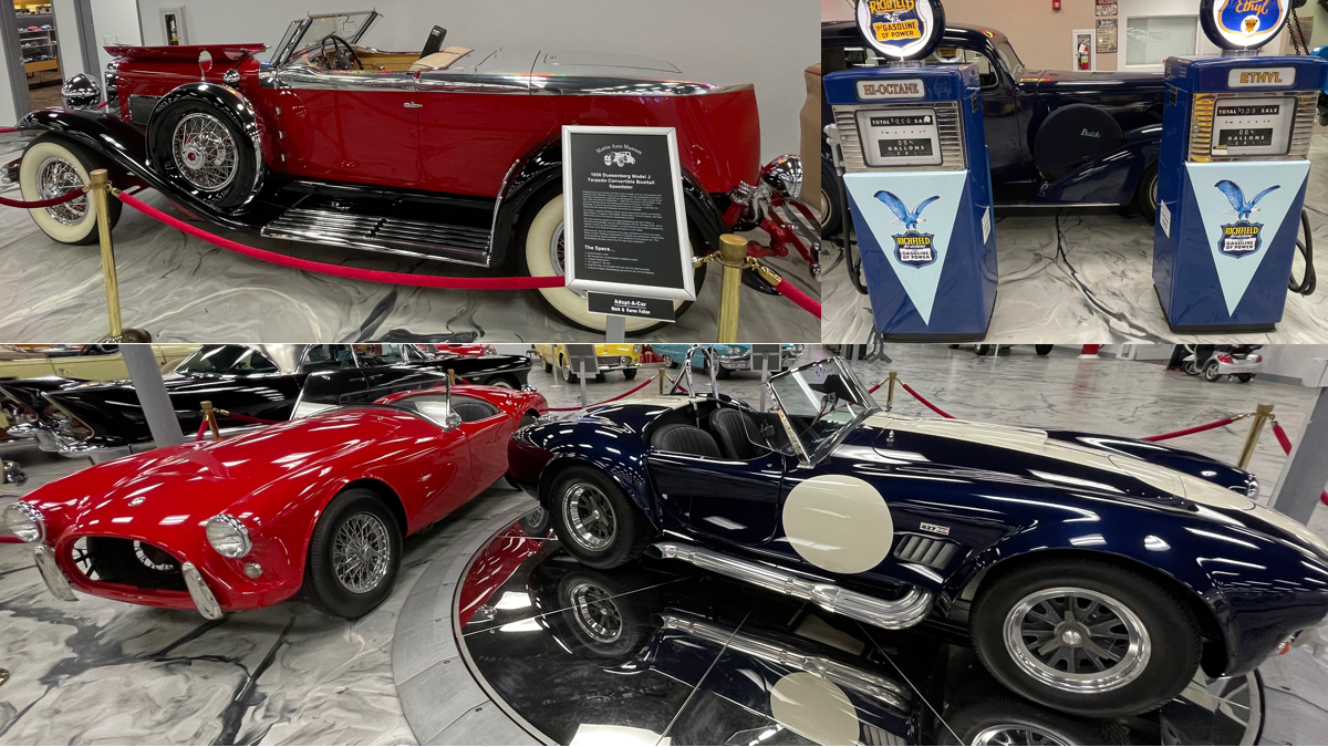 The 1930 Duesenberg Model J Torpedo Convertible Boattail Speedster is a must see. Less than 500 Duesenbergs were handmade between 1928 and 1937; less than 400 are still accounted for today worldwide. There’s also a 1965 Shelby AC Cobra that has only six original miles on it and features the signature of legendary car designer Carroll Shelby on the dash. Both of these cars are valued at several million dollars.
