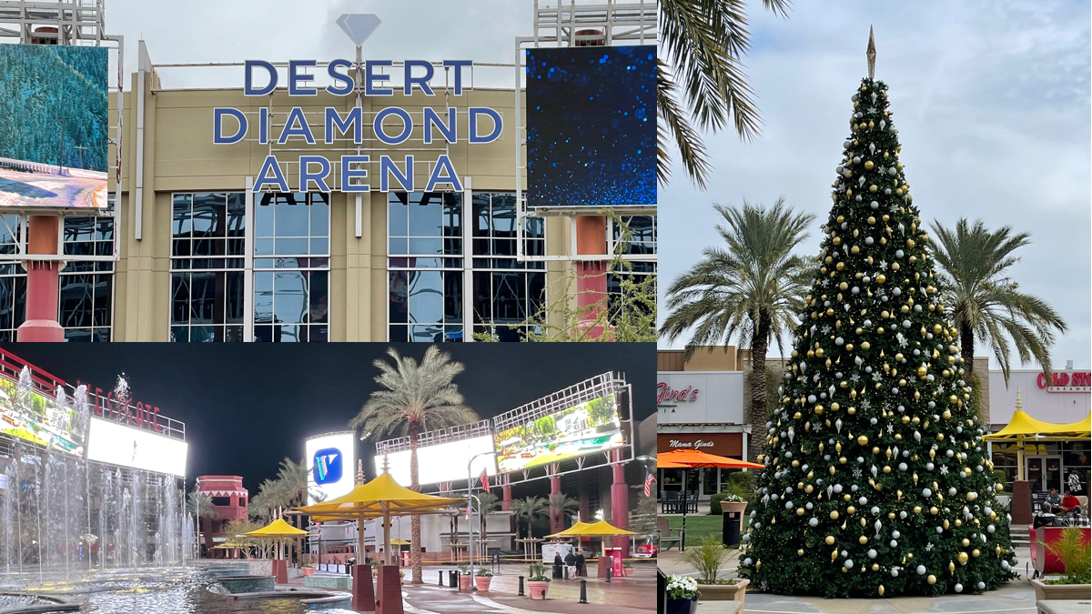 State Farm Stadium isn’t the only sports venue in the Westgate Entertainment District. Desert Diamond Arena sits across the parking lot, north of the massive football structure.