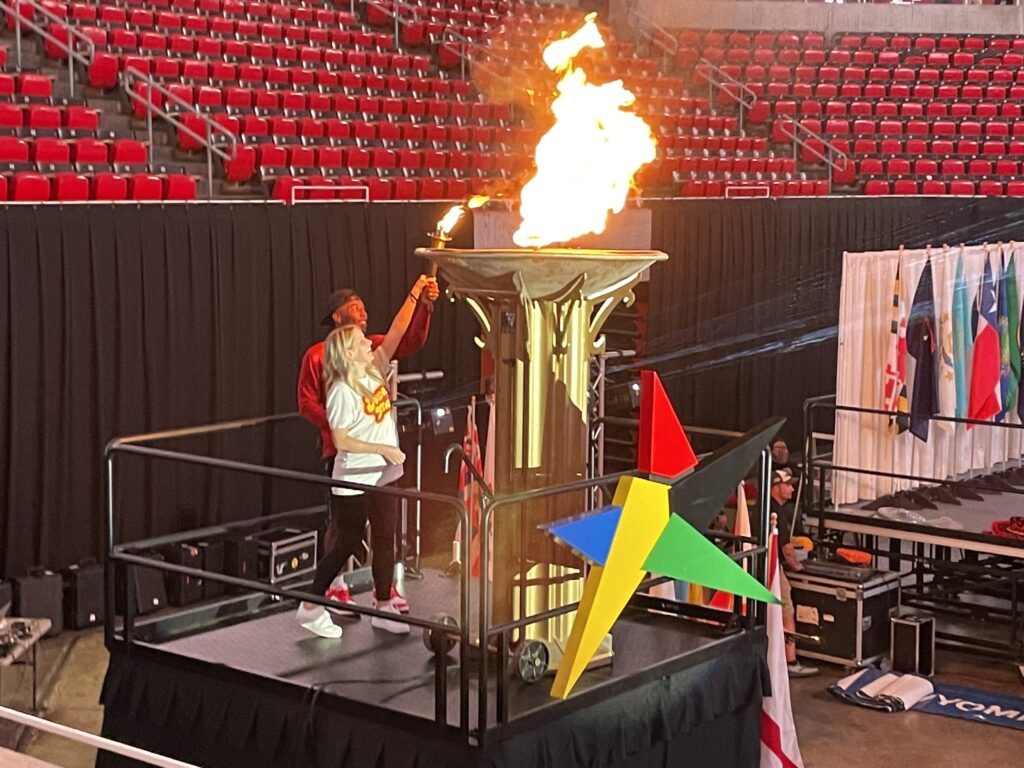 To that end, organizers staged a memorable Opening Ceremony at Hilton Coliseum on the campus of Iowa State with the feel of the Olympic Games, or at least as close to that experience as most competitors will ever get. It was a terrific event that featured a parade of states similar to the Olympic Games (as host state, Iowa got to march in last…), a cauldron lighting and fun and quirky facts of each state as they entered the arena. (Did you know the first traffic light in the United States was installed in Ohio? Now you know…)