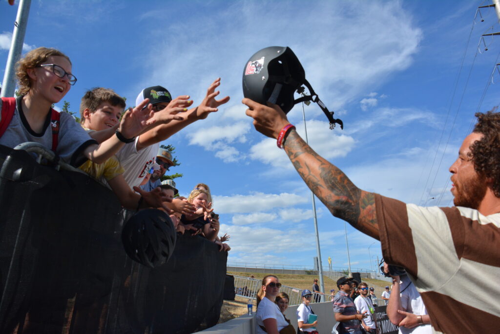 The Dew Tour athletes didn’t need to take an oath to commit to good sportsmanship, although I’m sure they would have if they were asked. It is in their DNA. These are professional athletes who give their equipment out to adoring fans without any effort, as I witnessed when Steven Breeding offered his helmet to a fan after the incredible adaptive park skateboard event. (Breeding does not have a right arm.)