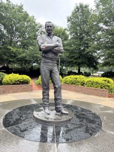 Here in the heart of Cabarrus County, this is where almost every Cup Series team still has a presence, the week of the 600 being one of the few chances that some of the workshops are open to the public. This is where the Kannapolis Cannon Ballers and its Earnhardt-adjacent mustached baseball logo — the team from 2001 through 2019 was known as the Intimidators and it’s not hard to figure out why — sit just a short drive from the track with its prototypical Southern downtown walkability, a statue of Earnhardt proudly declaring it his hometown surrounded by immaculately tailored grass off the main stretch.