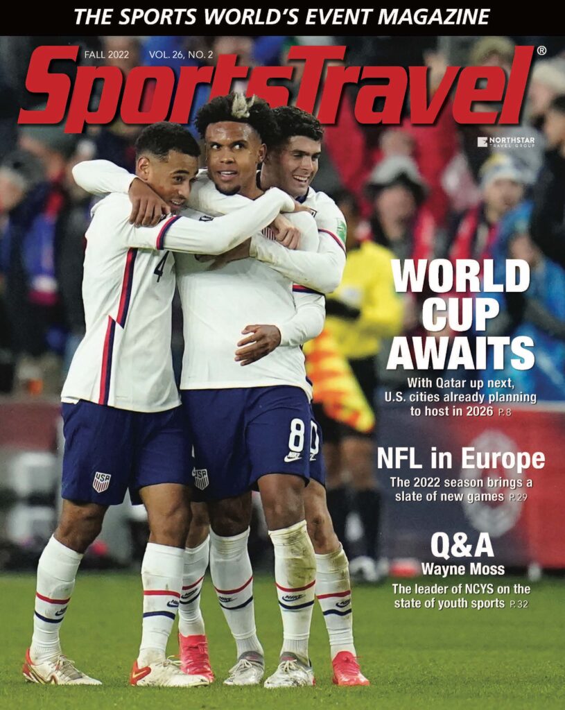 Read the Fall 2022 digital edition of SportsTravel! This issue takes a deep dive into preparations for the 2022 FIFA World Cup and a look ahead to when the event comes to North America in 2026. Stories in this issue include a look at the 50th anniversary of Title IX, building booms in soccer that include stadiums and training centers and a Q&A with National Council of Youth Sports Executive Director Wayne Moss on the state of youth sports. Among the stories inside: