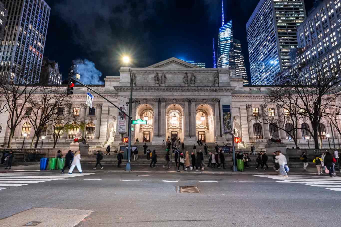 - More than just a place for borrowing books, the New York Public Library on Fifth Avenue and West 42nd Street offers a wide range of activities in the heart of Manhattan. Author talks and conversations, exhibitions, and arts and crafts programs are just part of a very busy calendar. A magnificent structure, the library opened in 1911 on the site of an old reservoir with ornate detailing in its marble facade and the famous pair of stone lions — nicknamed Patience and Fortitude by locals — flanking the entrance.